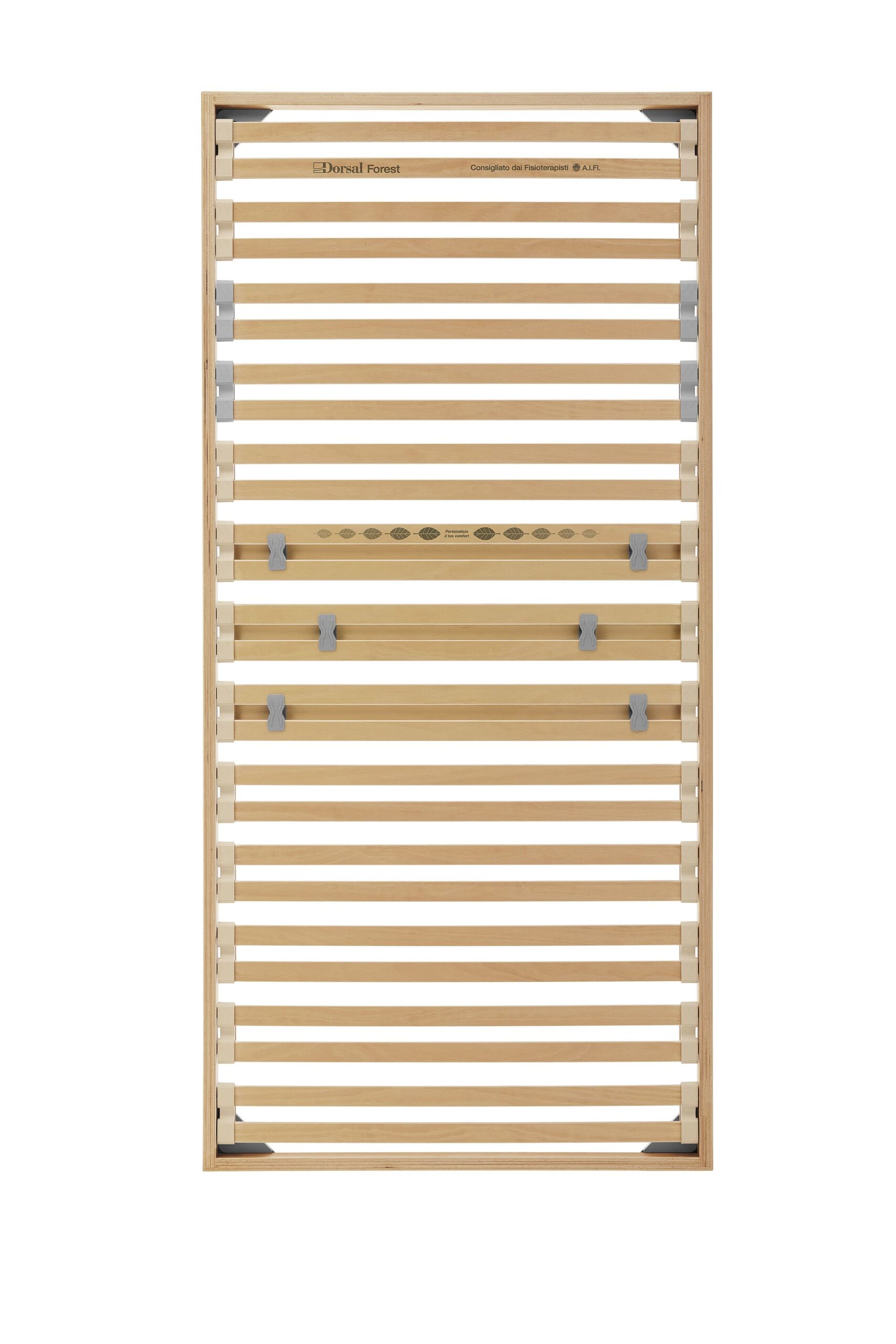 Le reti con telaio in legno Dorsal garantiscono un’elevata elasticità e un supporto ergonomico ottimale. Realizzate con legno ecosostenibile certificato FSC® e PEFC, sono resistenti e longeve, e assicurano un riposo eccellente, naturalmente anatomico e rispettoso dell’ambiente.